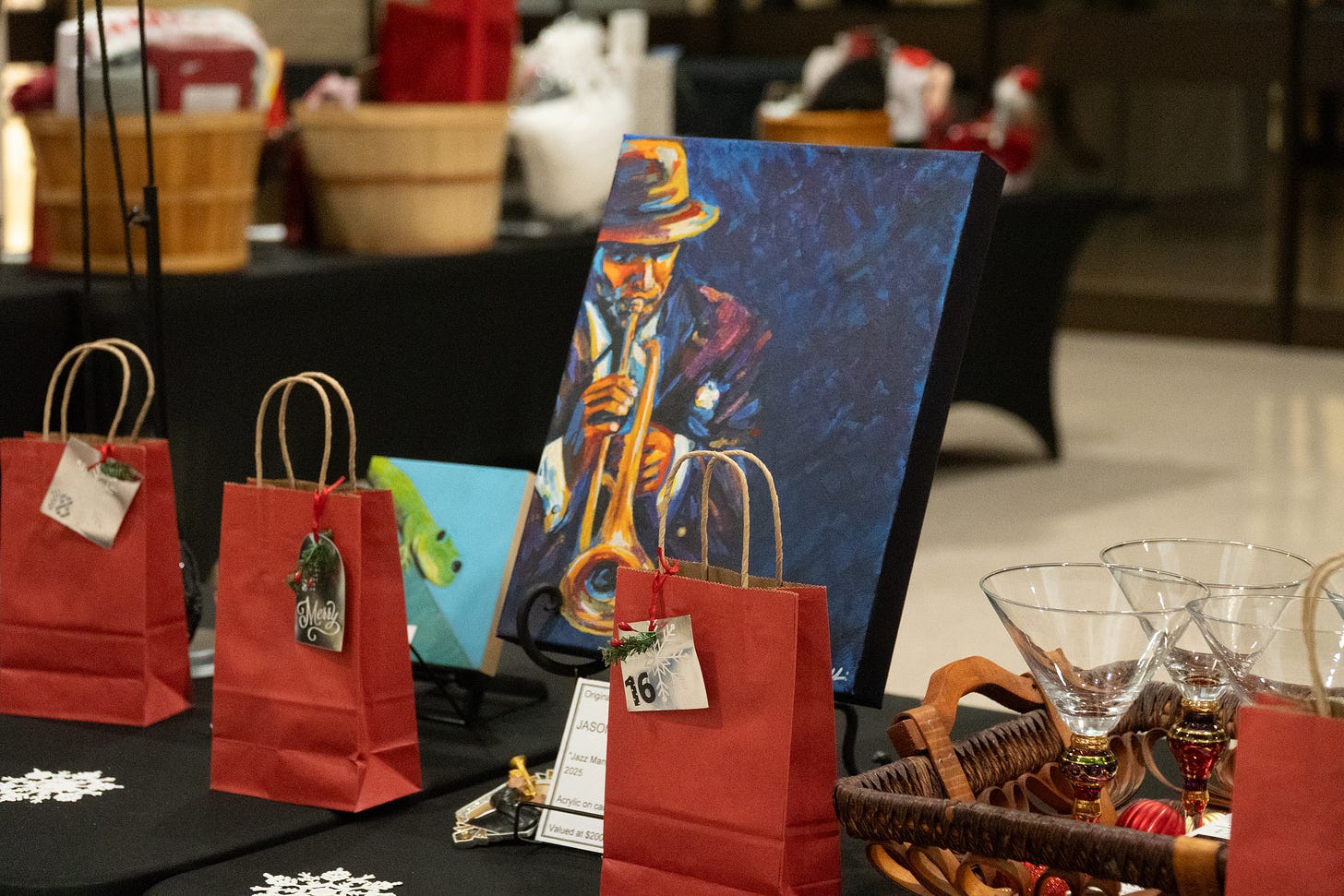 This year’s raffle was especially dope, too. Mrs. Sherrell Thomas outdid herself. One of the most coveted prizes was a Blue Jazzman, custom painted by local artist Jason Glikas. This author put all of his 35 raffle tickets in the bag for this item, but still didn’t win it. However, the couple who won it heard me comment how much I liked it, and they actually gifted it to me! Thank you again!